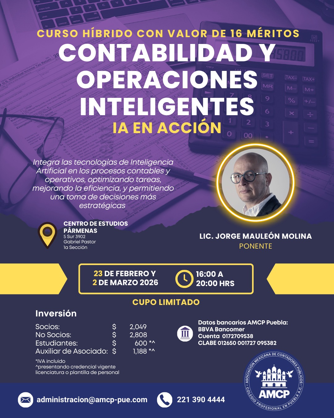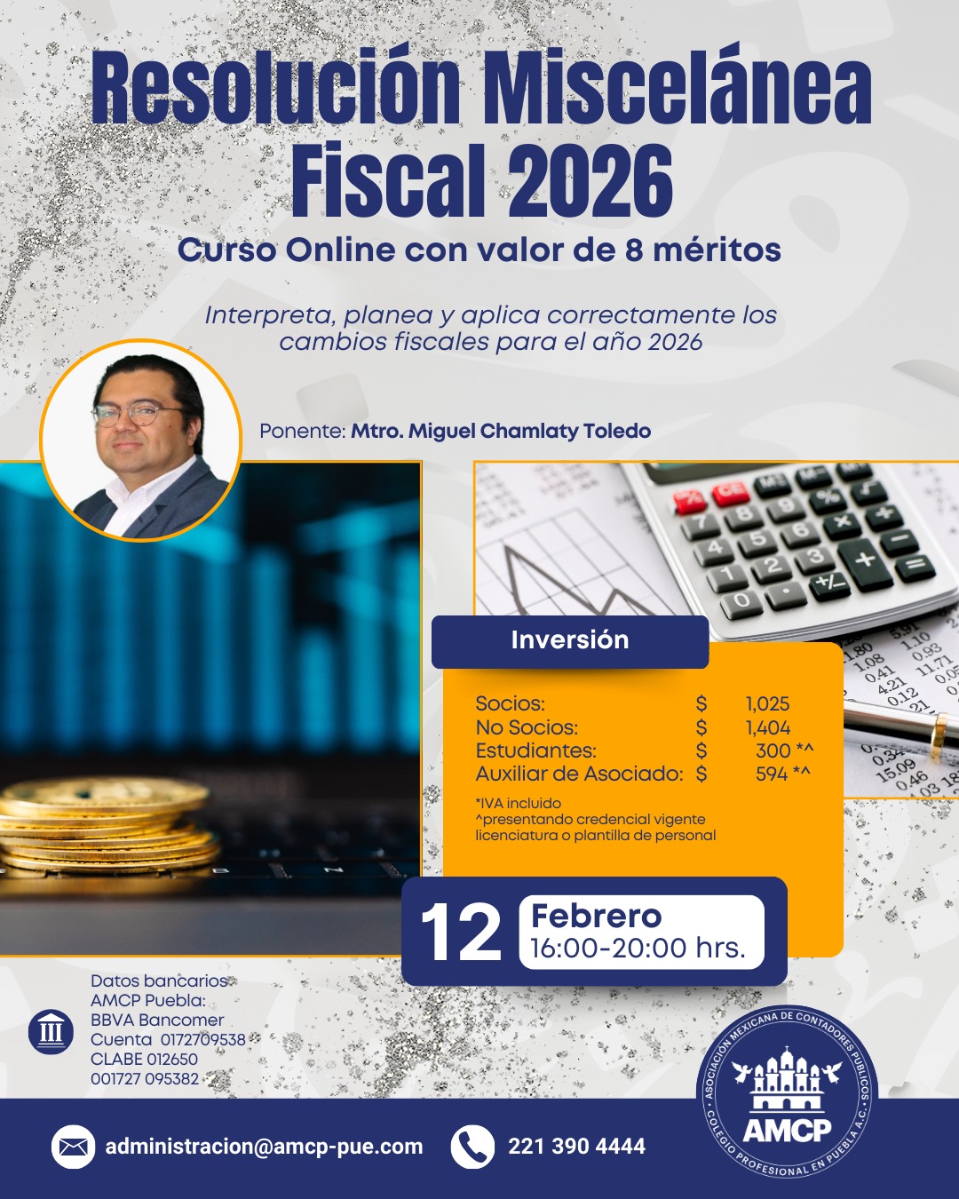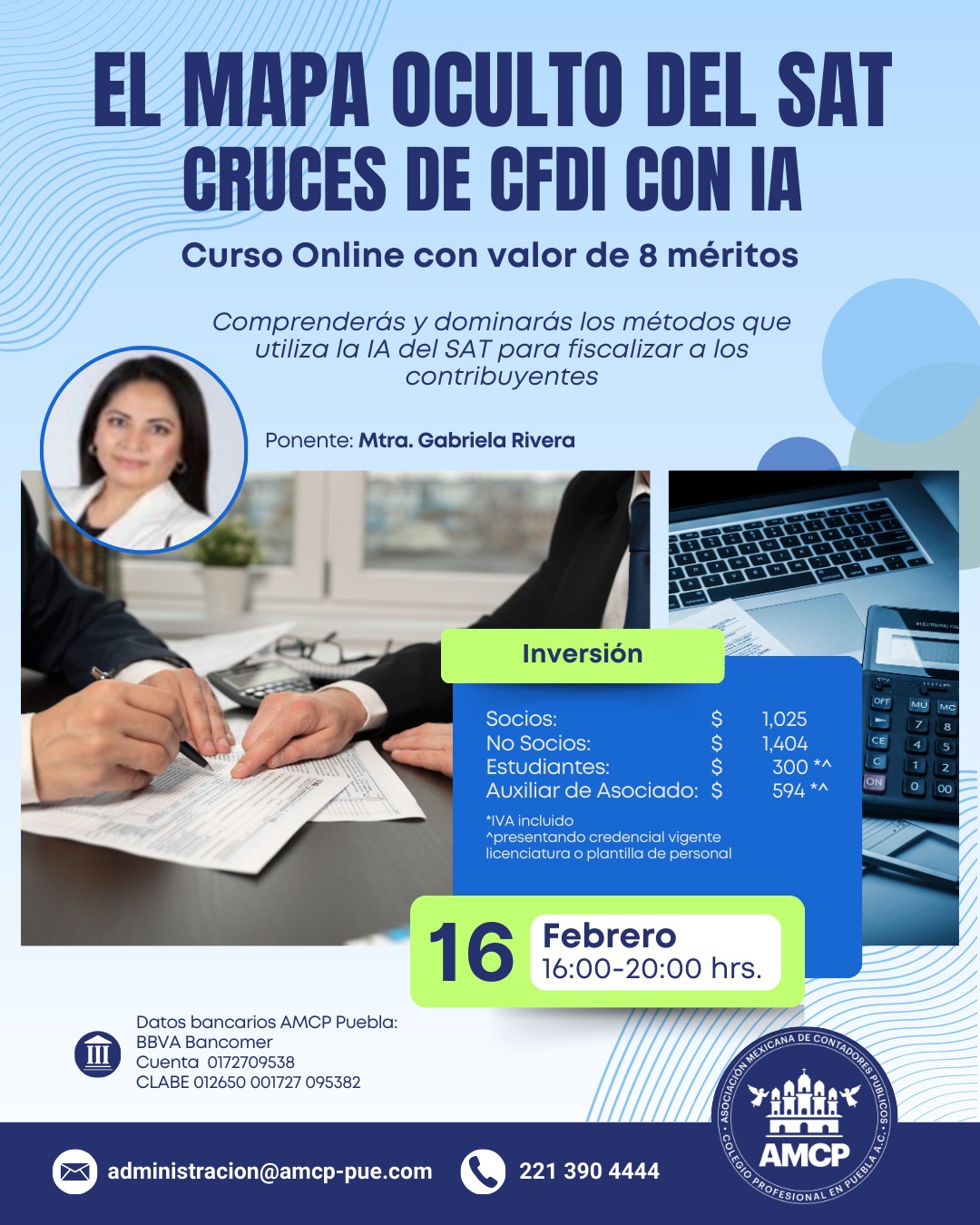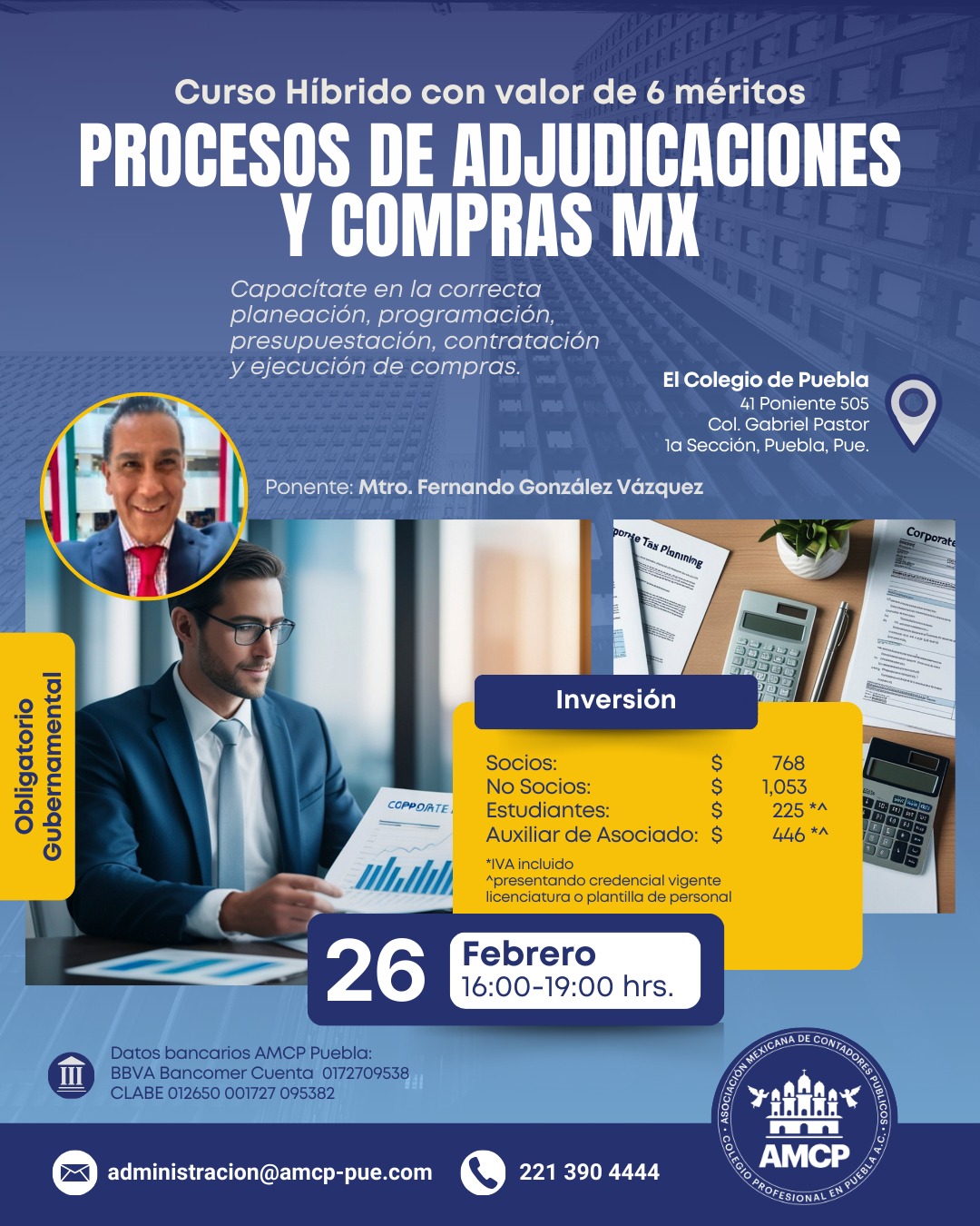 Asociación Mexicana de Contadores Públicos, Colegio Profesional en Puebla A.C, con domicilio en 51 poniente No. 505 Local 25 plaza América es responsable de sus datos personales recabados.