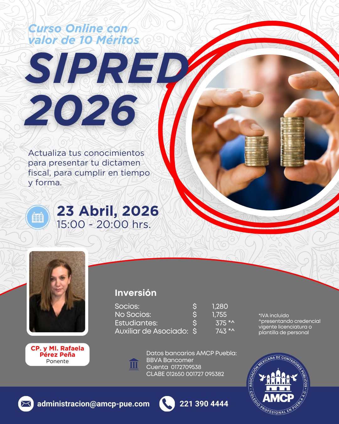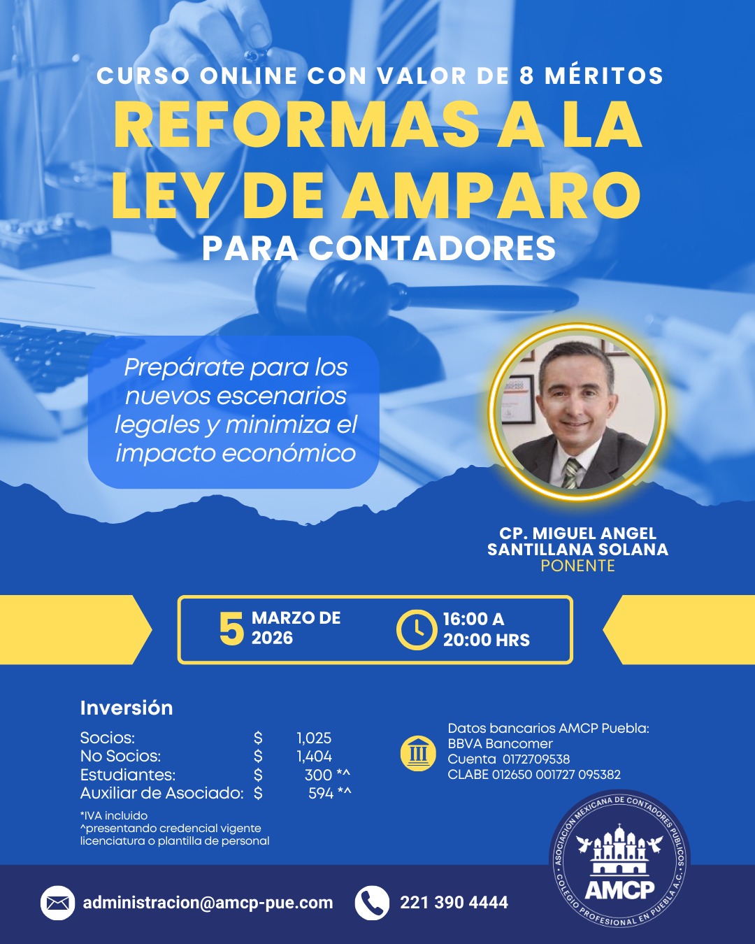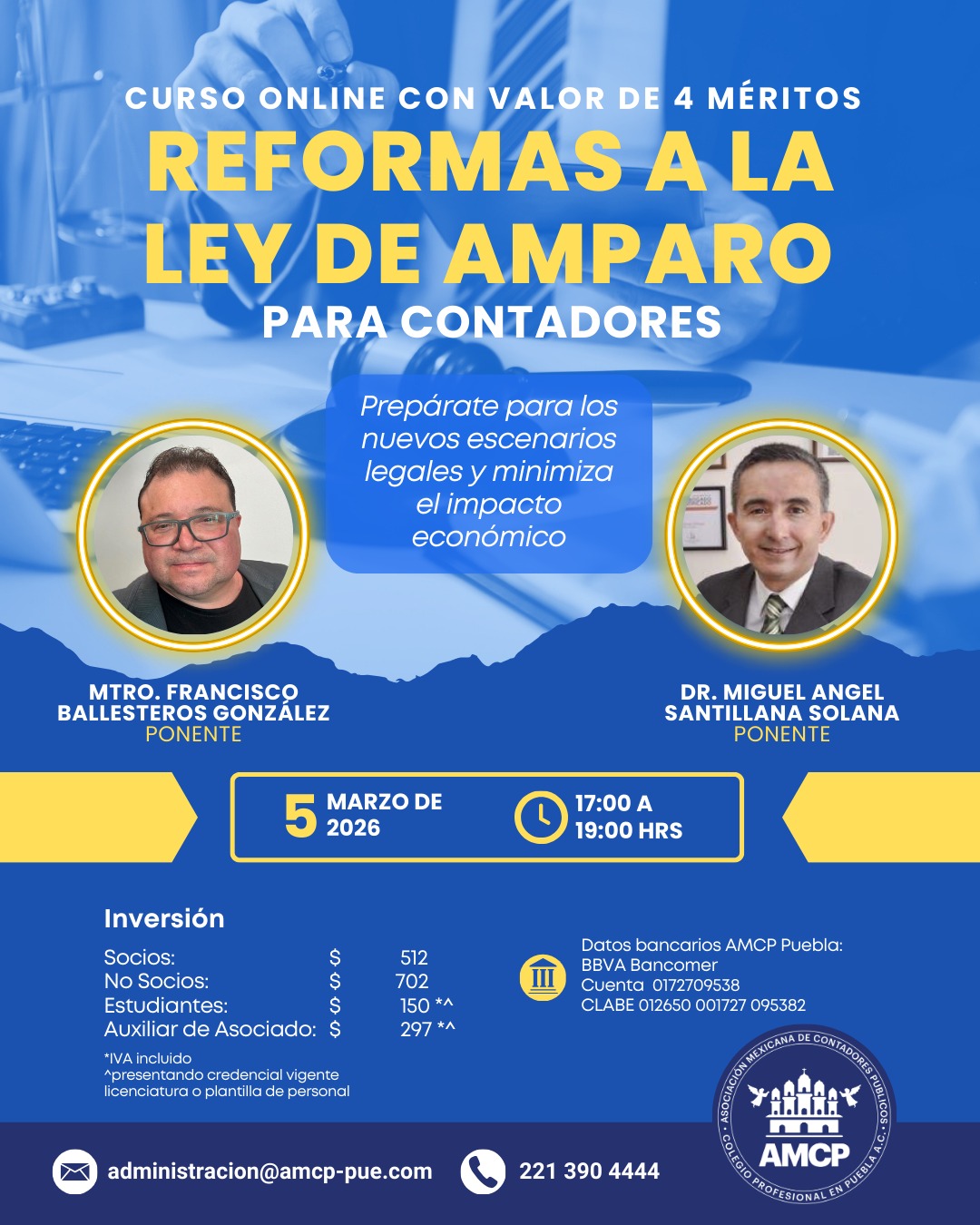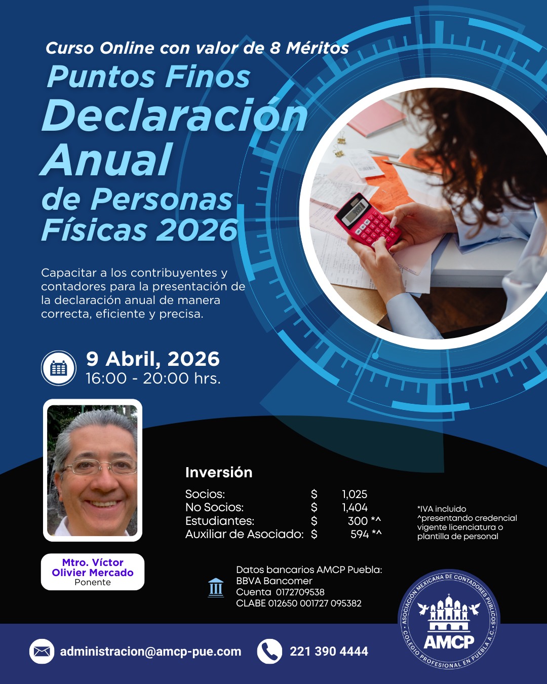 Asociación Mexicana de Contadores Públicos, Colegio Profesional en Puebla A.C, con domicilio en 51 poniente No. 505 Local 25 plaza América es responsable de sus datos personales recabados.