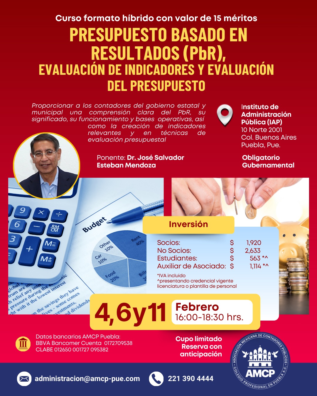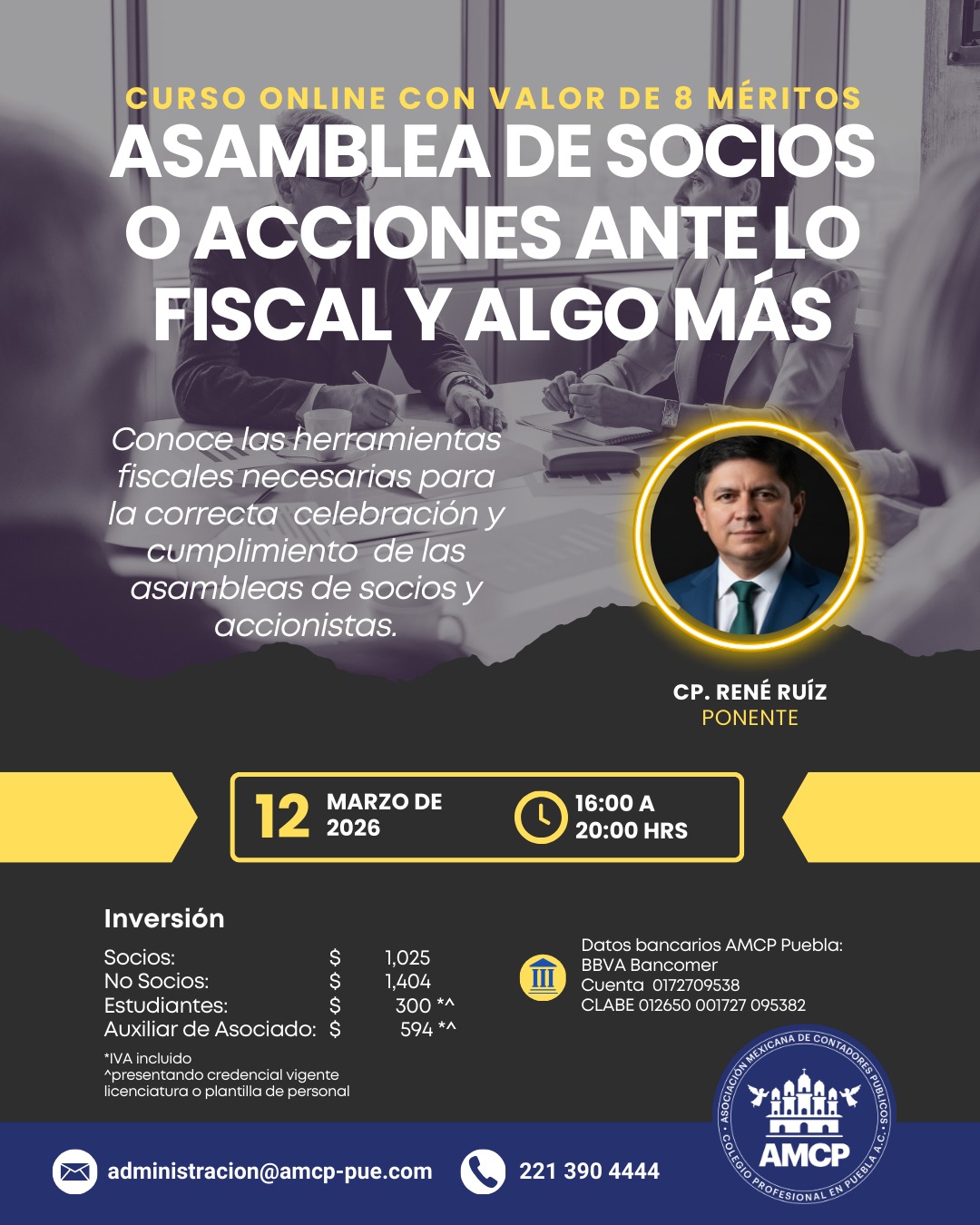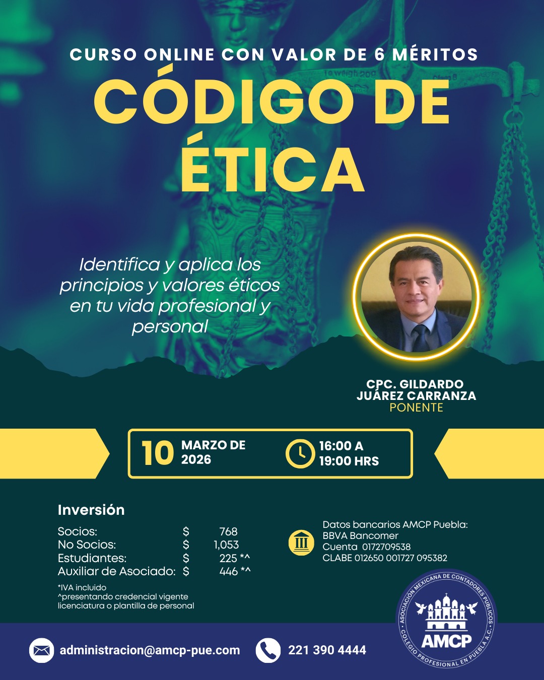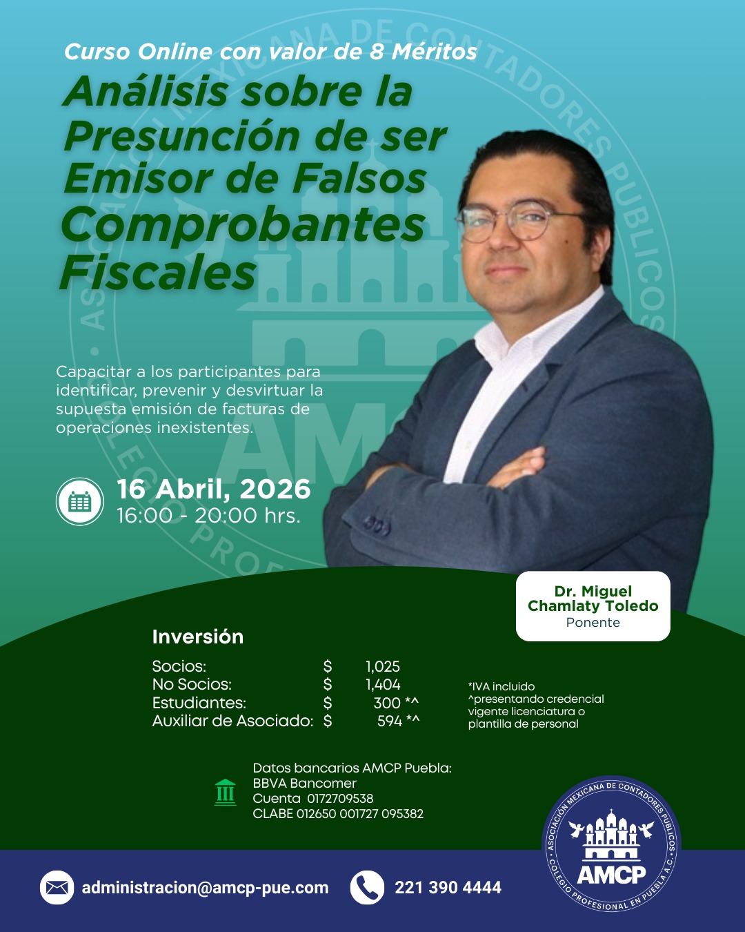Asociación Mexicana de Contadores Públicos, Colegio Profesional en Puebla A.C, con domicilio en 51 poniente No. 505 Local 25 plaza América es responsable de sus datos personales recabados.